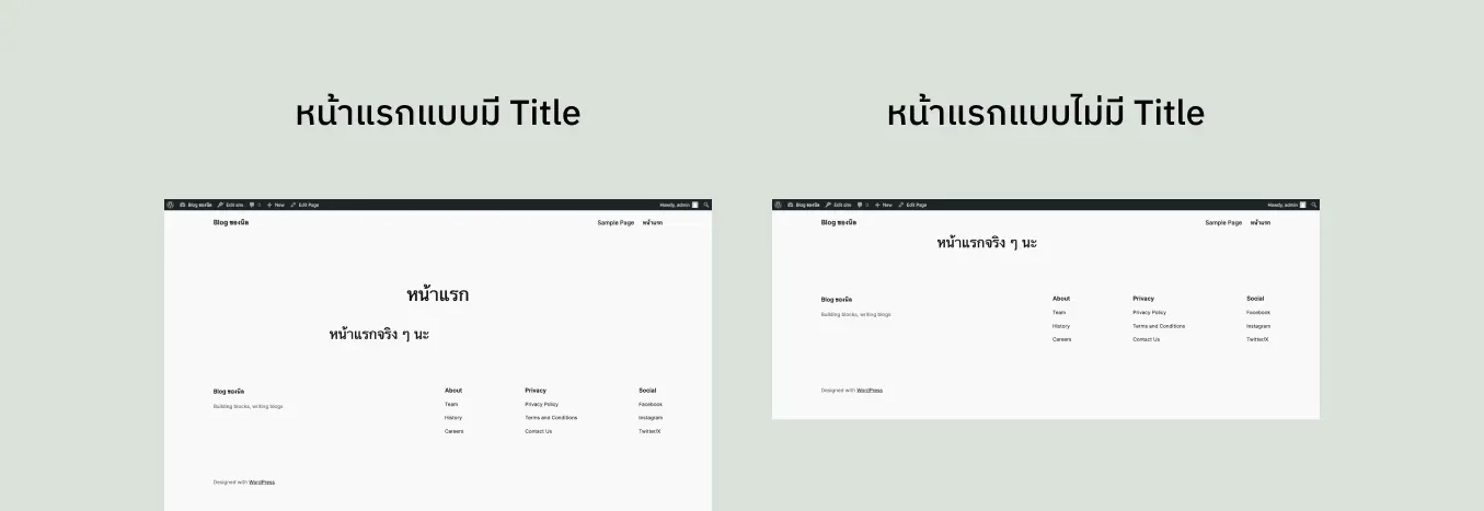 - Site Title: ชื่อของเว็บไซต์ ใช้เพื่อแสดงที่ Header กับที่ Tab ของ Browser